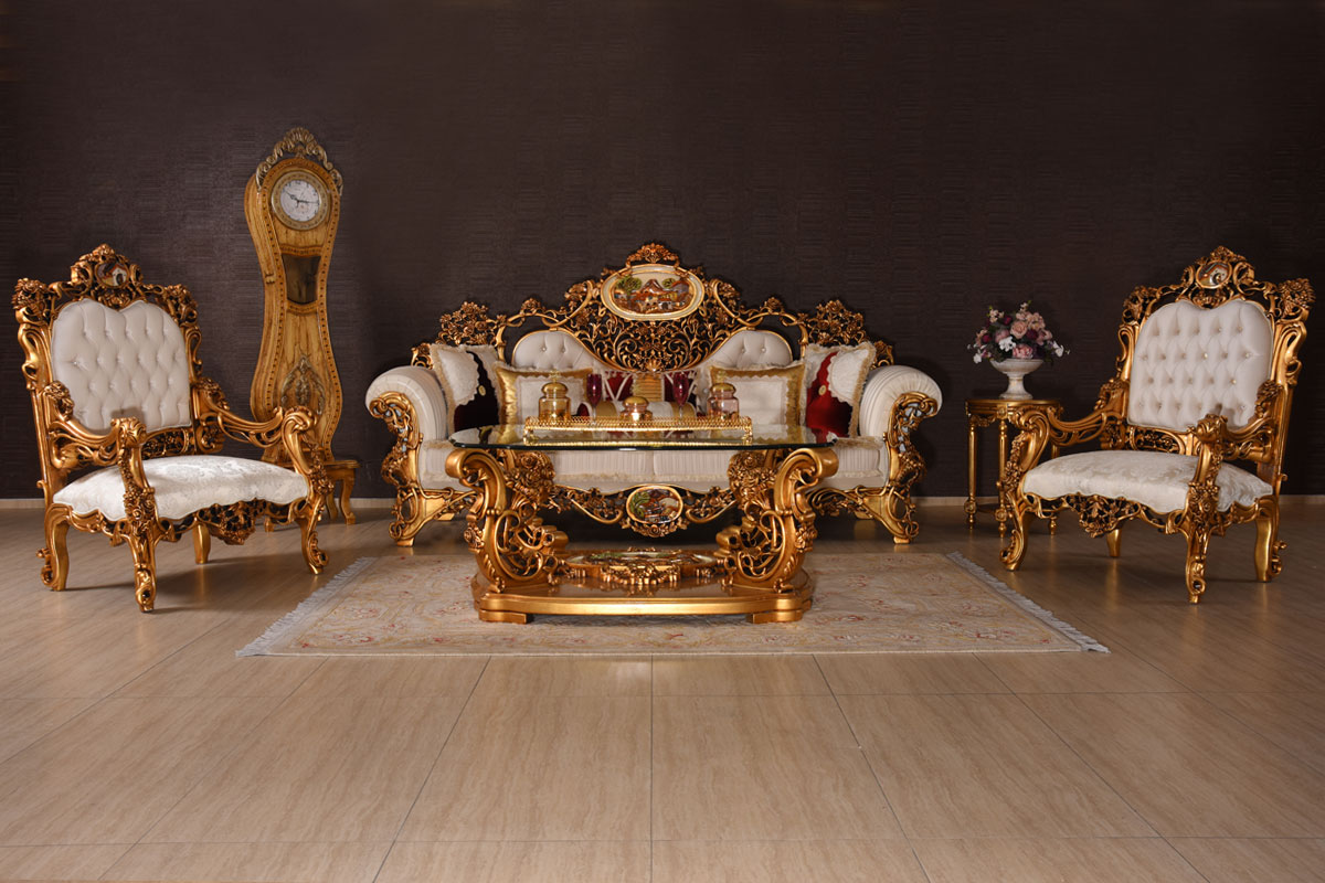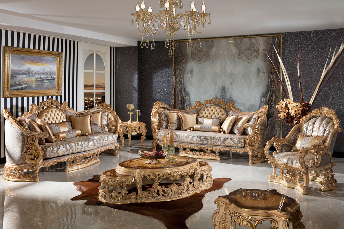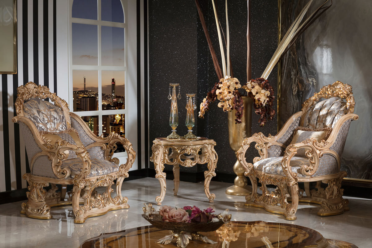 Genel Açıklama: Ekselans Klasik Koltuk Takımı, MKM GROUP Moble'nin özenle ürettiği ve doğal ahşap ile el işçiliğinin buluştuğu zarif bir klasik koltuk modelidir. Her detayında kalite ve özen görülen bu takım, özel renk seçenekleri ve istenilen ölçülerde üretilerek müşterilerin beğenisine sunulmaktadır. İki adet kanepe, iki adet berjer ve bir orta sehpadan oluşan bu takım, isteğe bağlı olarak iki yan sehpa ile de zenginleştirilebilir. MKM GROUP Moble güvencesiyle dünyanın her yerine gönderilebilen bu klasik koltuk takımı, estetik ve dayanıklılığıyla dikkat çekmektedir. Ekselans lüks salon takımı modeli, müşterilerimizin istediği ölçü ve renk seçenekleri ile kişiye özel olarak üretilebilir. Ekselans oturma grubu genellikle kendi grubundan olan Ekselans Klasik Yemek Odası takımı ile birlikte tercih ediliyor.